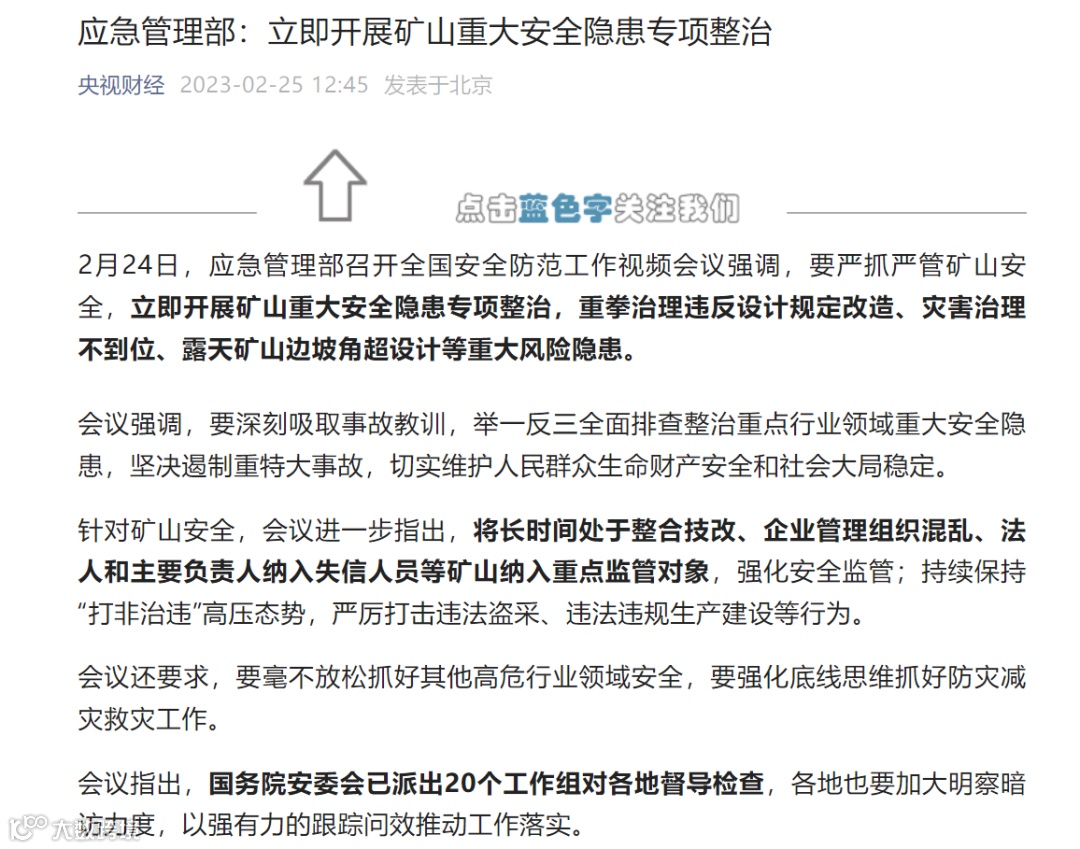 目前,中央对媒体反映的宜春锂矿开采乱象高度重视,并作出批示,之后中央工作组密集赴实地调研、督导。