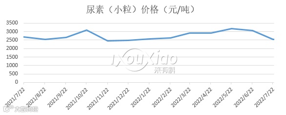 截至7月21日,尿素出厂均价约2608元/吨,较7月1日下跌425元/吨,跌幅约14.01%。除了尿素以外,磷酸一铵、氯化钾、氯化铵等化肥原料都有不同程度的下跌。