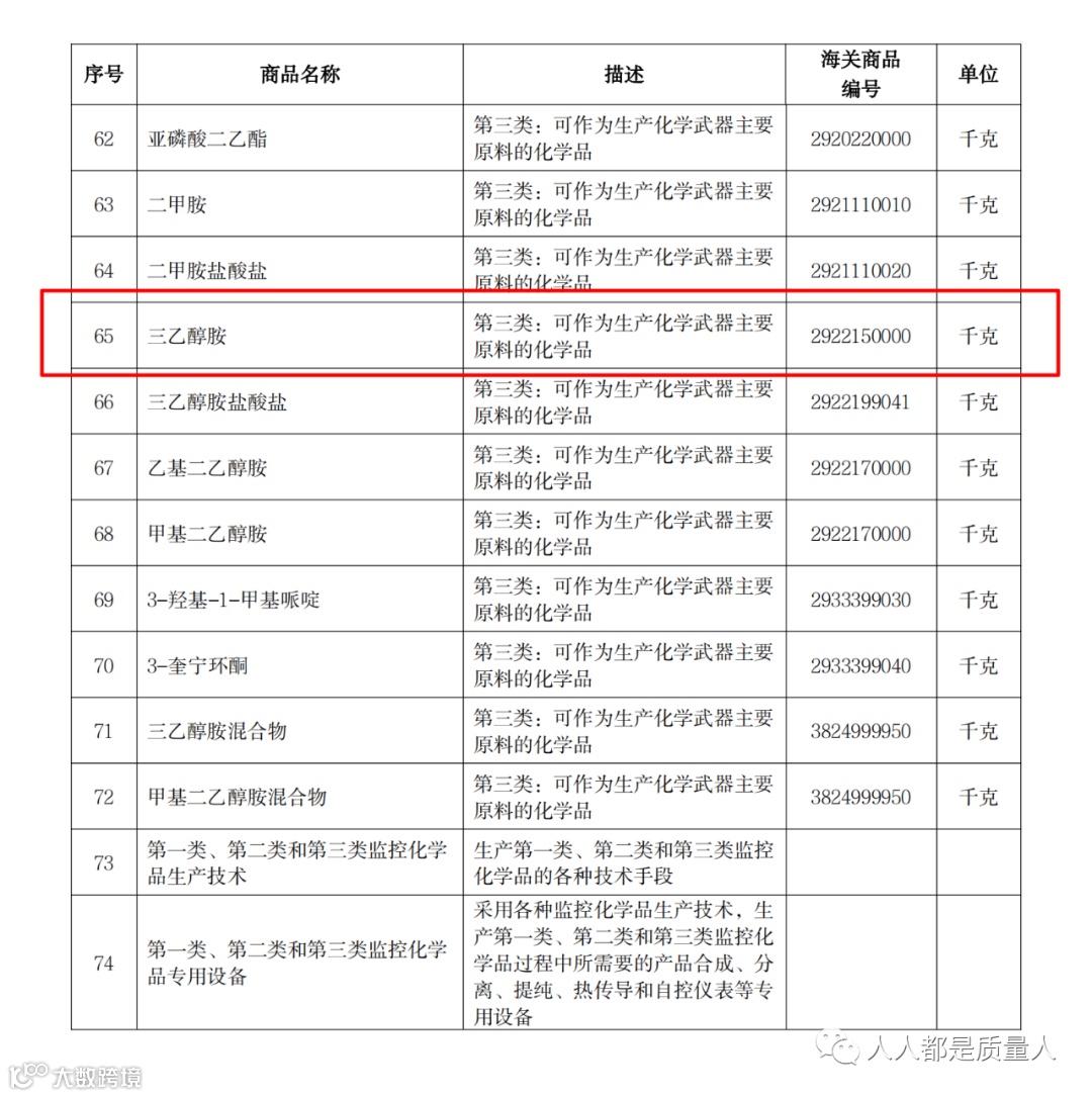 》中,三乙醇胺及其盐酸盐、混合物也因同样的原因位列其中。