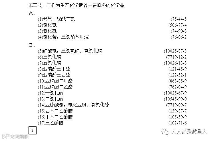 如此“多才多艺”的三乙醇胺为何会被严格监管呢?那必定逃不开他还有一项鲜为人知的能力,那就是可以被用来制造氮芥毒气。在《各类监控化学品名录》中,三乙醇胺被列为“第三类:可作为生产化学武器主要原料的化学品”。