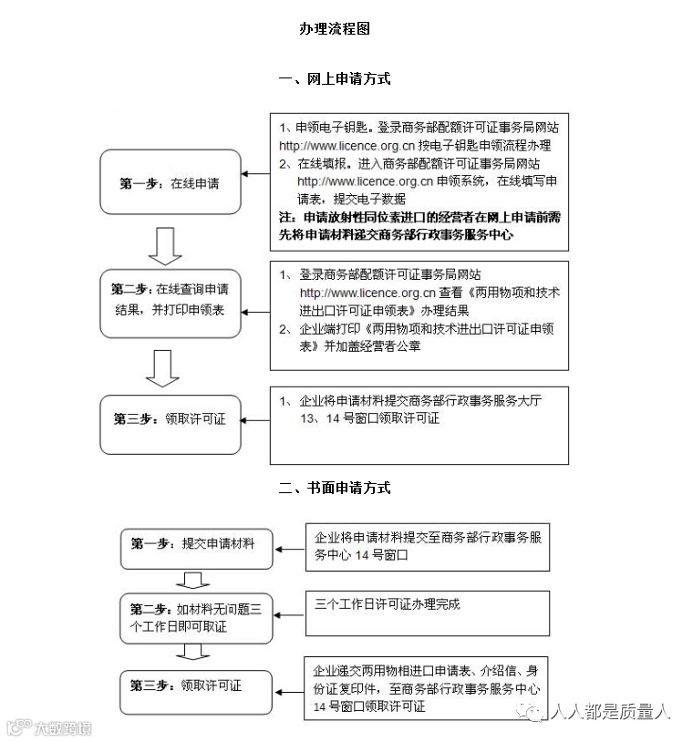 ),需要先去商务部申请《两用物项和技术进出口许可证》,具体申请流程小编已经放在下图了。