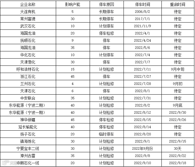 不仅国外大厂开始减产了,国内也出现大批的厂家集中检修停产的情况,今年8月以来,国内PP装置检修增加,停车检修50条生产线,涉及产能高达1157万吨/年!