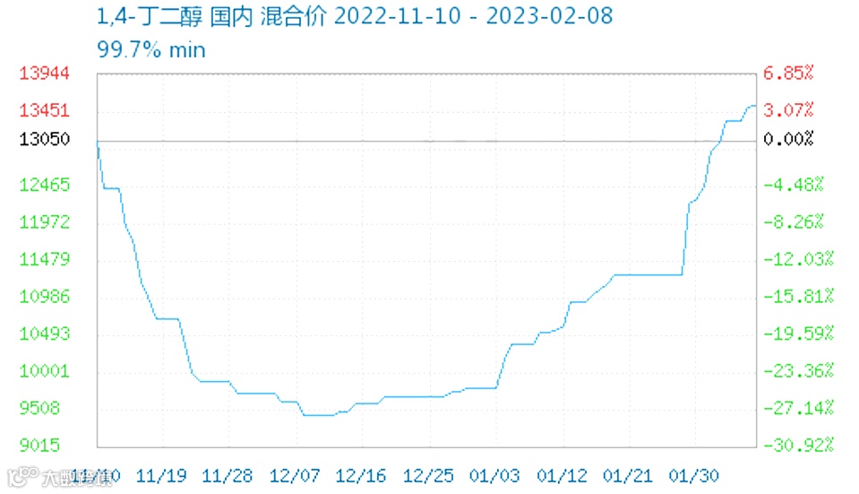 以聚氨酯产业链为例,近期聚氨酯产业链出现上游原料TDI、MDI、BDO涨势迅猛态势,尤其BDO自进入2023年后反弹明显!价格已经自年初上涨超1100元/吨!