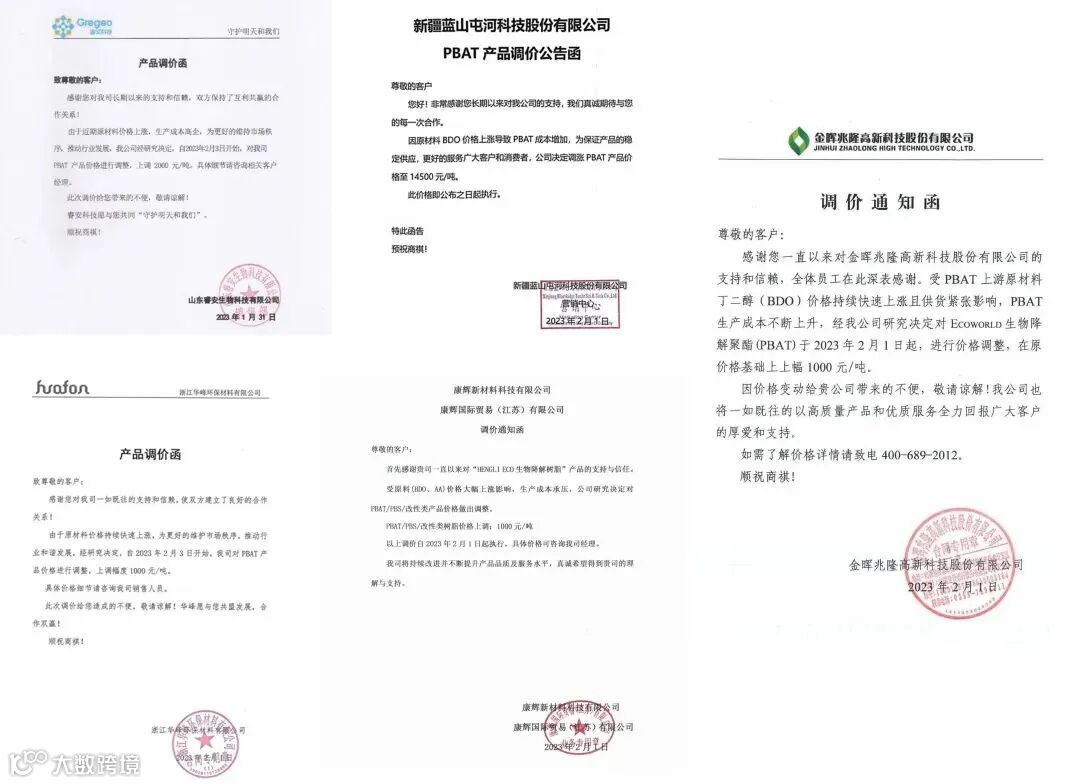 ▶▶浙江华峰:自2023年2月3日开始,我司对PBAT产品价格进行调整,上调幅度1000元/吨。