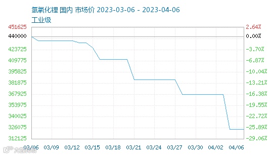 氢氧化锂同样在短短一月时间内跌超11万元/吨,跌幅达25%。
