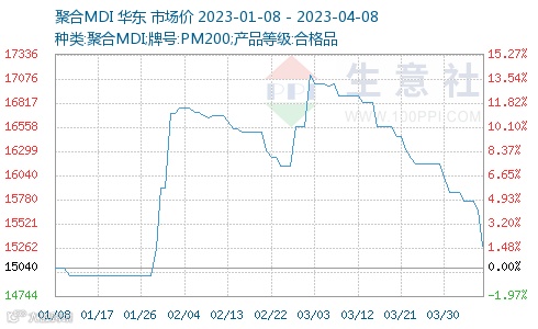 万华化学TDI直销客户2023年3月结算价17900元/吨承兑;2023年4月TDI挂牌价19000元/吨(直销),环比下调1100元/吨。