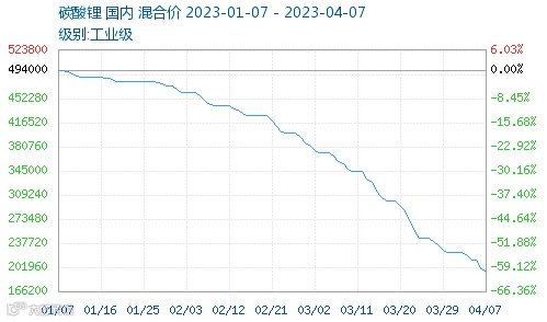 此外,当前六氟磷酸锂跟跌趋势明显,3月底市场主流价格在11.7-12.5万元/吨,较去年3月近60万元/吨的价格已跌去80%。