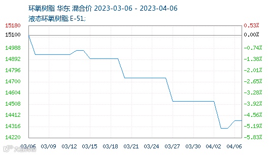3月-4月价格下跌走势明显,在过去的一季度中,环氧树脂市场最低价14650元/吨,最高价16150元/吨,价格振幅9.29%。市场价格涨跌节奏主要受终端及下游需求影响,一季度下游整体需求表现不佳,生产企业新单出货受阻,交投重心走低,预计后续环氧树脂市场弱势气氛难改。