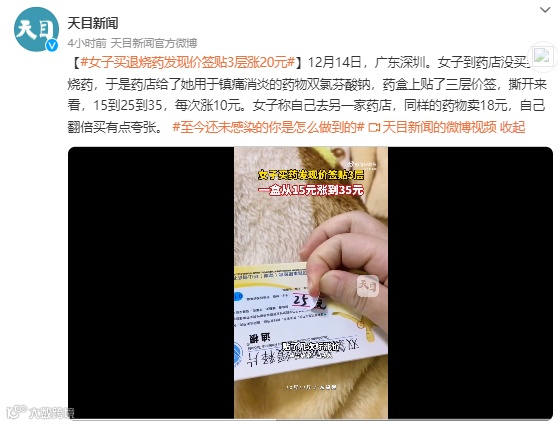 也有网友爆料,一盒镇痛消炎药竟三次加价,涨幅高达133%!广化君就想问一句:趁机提价,你的良心不会痛吗?