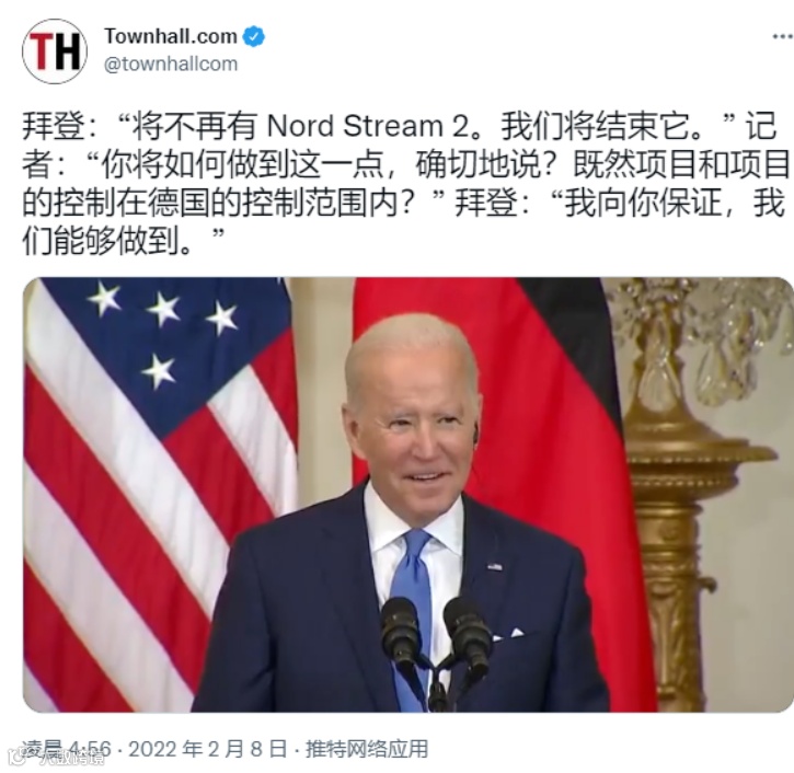 拜登早在今年二月就曾公开表示过:将不再有北溪-2工程,我们会结束它。当然,那时候的表态是指政治上解决。