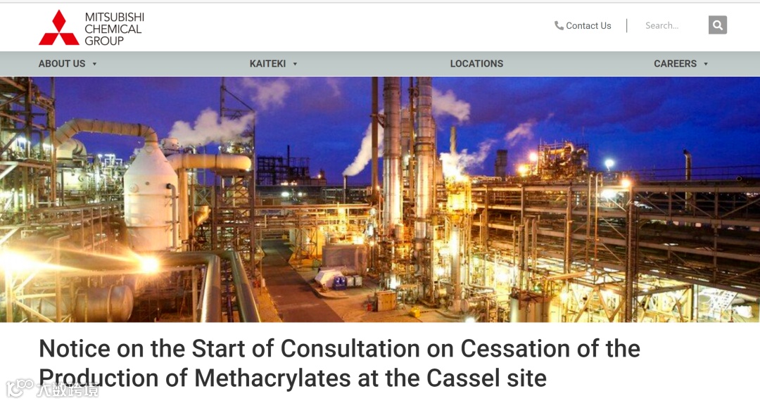 11月24日,三菱化学在其官网发布消息称,公司在Mitsubishi Chemical UK Limited的Cassell工厂MMA(甲基丙烯酸甲酯)停产的前提下,已与员工进行劳资协商。