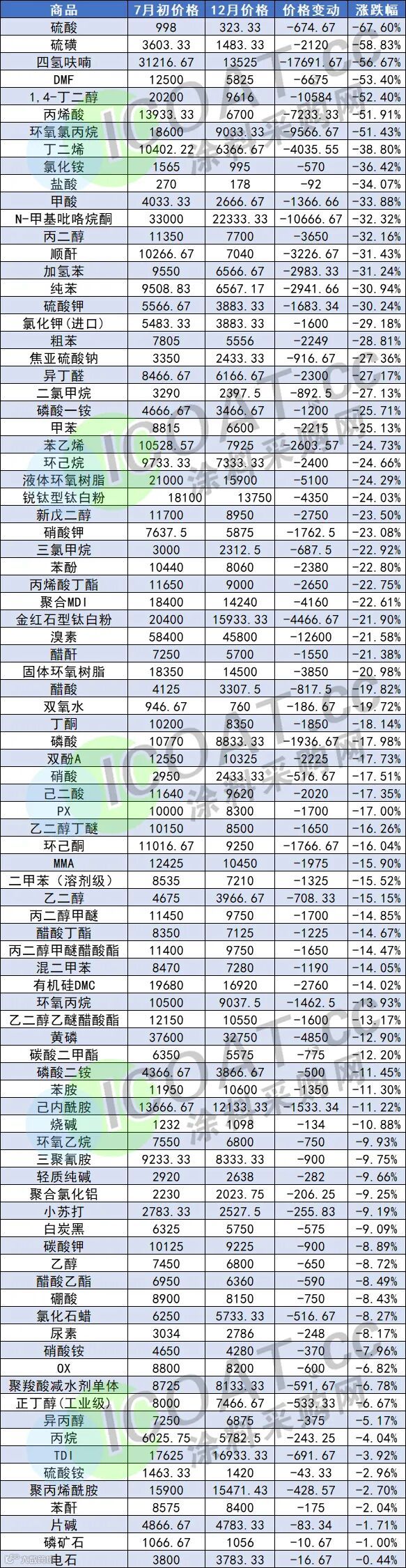 暴跌67%!80多种化工品价格下滑,涂料产业链跟跌