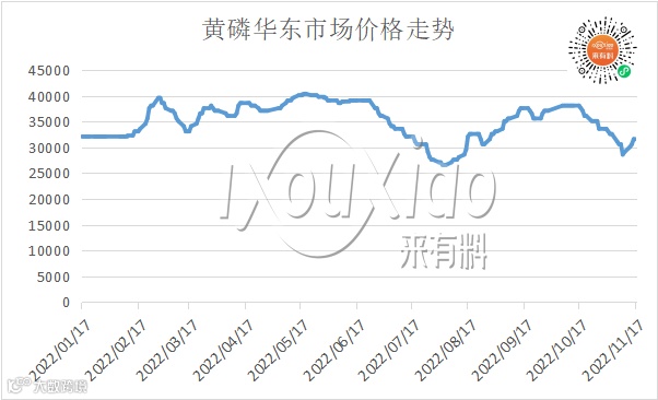 例如黄磷,其价格近一月已下跌超万元。根据卓创资讯,黄磷价格自10月10日爬上了38100元/吨小高峰后,持续暴走下行,到11月10日,已经跌去10000元/吨,下行至28600元/吨,单月跌幅达28%。