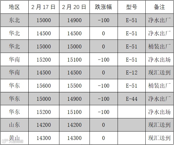 2月17日,树脂成本面波动寥寥,持货商报盘部分平稳,下游终端入市采买积极性不高,仅维持小单刚需采购。