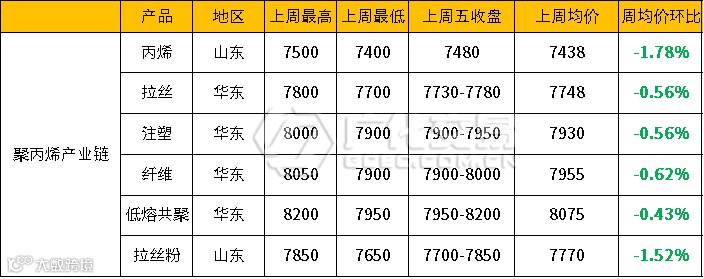 最近PP可谓是易跌难涨,2个月前的大涨态势还未持续多久,就出现了长达半个月的下跌,好不容易年后各大原料出现上涨行情,PP也是跟着迎来了上涨,但好景不长,近期PP走跌明显,聚丙烯产业链全线均有下滑!