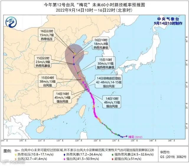 “梅花”即将于14日傍晚前后在浙江三门到