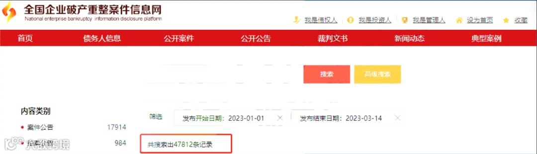 尽管2023年疫情得到了控制,但由于长期的需求不足,企业的生产能力过剩,产品库存积压严重,导致下游行业陷入了经营困难的囧局,倒闭或者被迫注销的情况时有发生。全国企业破产重整案件信息网数据显示,2023年以来,已有47812条记录涉及破产重整。
