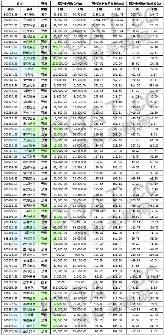 化工行业50多家上市公司业绩预增,覆盖了农化、磷化等多个细分领域。