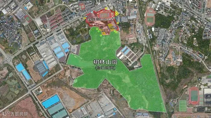 地图上显示:发现胡鑫宇的金鸡山,就在致远中学后墙外的南部区域。学校几乎是全封闭的。