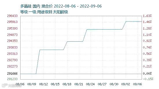 有业内分析指出,本次电池片调价主要是由于硅料价格连续上涨。近一个月的数据显示,多晶硅的价格呈持续上涨趋势,8月6日报价291666元/吨,9月6日报价295913元/吨,上涨4247元。