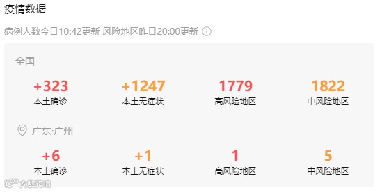 近期国内本土疫情零星爆发,防控形势严峻,截至9月6日24时,目前全国有1843个高风险地区,1788个中风险地区,320个低风险地区。