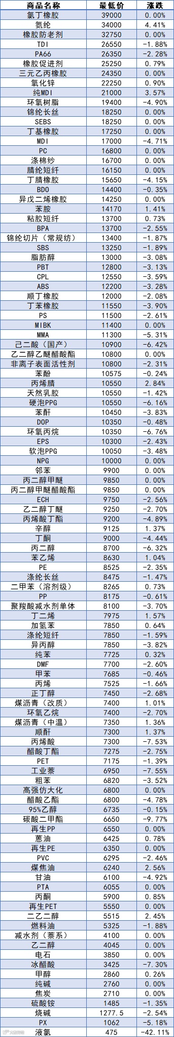 近百种化工品上涨