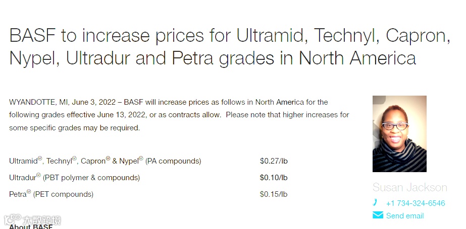▶Ultradur ®PBT聚合物和化合物产品涨0.10 美元/磅