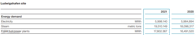 但是否停工很大程度上取决于能源的供应稳定性。路德维希港基地是德国最大的电力消费者之一,2021年用电需求量达到59.98亿瓦时,化石燃料供电量达到178亿瓦时,蒸汽需求达到1.9万公吨。