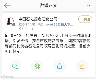 这不是广东茂名石化第一次发生事故了,3月30日13时40分左右,广东茂名石化化工分部2号裂解3号炉发生着火。经茂名石化应急救援中心、茂名市消防救援支队扑救,14时05分左右,火势已被扑灭,没有人员伤亡。