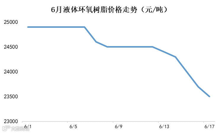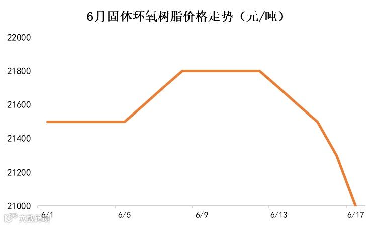 6月17日,液体环氧树脂主流价格跌至23500元/吨,固体环氧树脂主流价格跌至21000元/吨,一周跌幅都达到了千元左右: