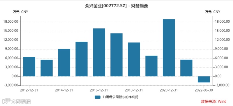 众兴菌业净利润却极不稳定,在2016年达到1.59亿元后,公司净利润却出现了三连降。今年上半年,众兴菌业的归母净利润为-2003.2万元,同比大幅下滑259.85%。2022年8月以来,受四川限电影响,企业直接损失较大,致使其现金流难以维系。