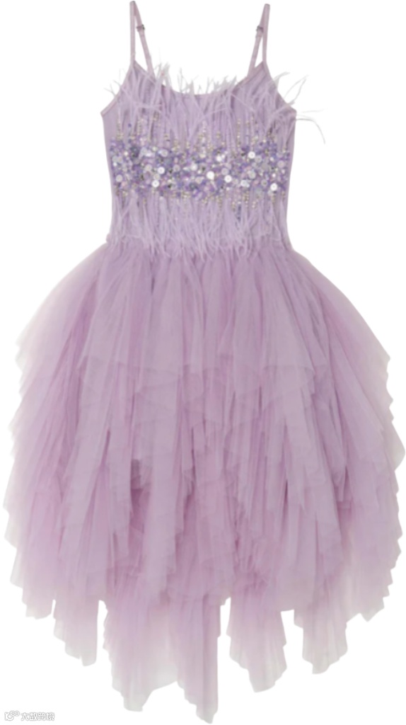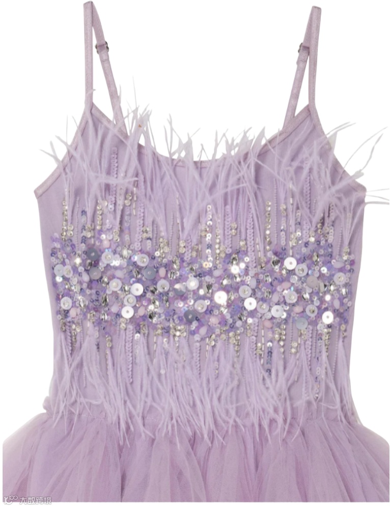 淡紫调Serena纱裙,自带海洋女神的灵韵气场。羽毛质感薄纱裙摆如海浪轻漾,上身缀满亮片与珠饰,以柔羽为边,整体设计自带柔光,流转着神话般的神秘魅惑。