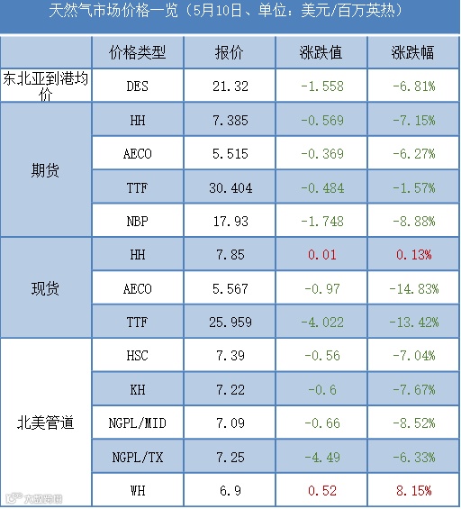 ▶欧洲方面,欧美计划将对俄罗斯进行第六轮制裁,原油与煤炭价格持续上涨,带动替代能源LNG价格上涨;但供需方面,欧洲目前现有供给较为稳定,英国风力发电及挪威天然气产量有所增加,整体产量有所增加,且欧洲气温温暖,下游需求减少,市场库存不断增加,当地时间10日,乌克兰失去卢甘斯北部地区控制,该地区泵站无法操作,天然气运输暂时中断,市场对于后市供应的担忧增加。