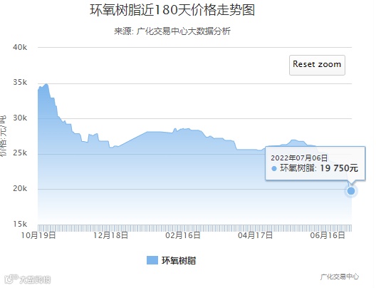 本周,环氧树脂延续跌势。7月6日,环氧树脂报价跌破20000元/吨。今日(7月7日),华东环氧树脂(E-51)主流报价在19000元/吨,单日大跌500元/吨,近10天大跌2500元/吨。