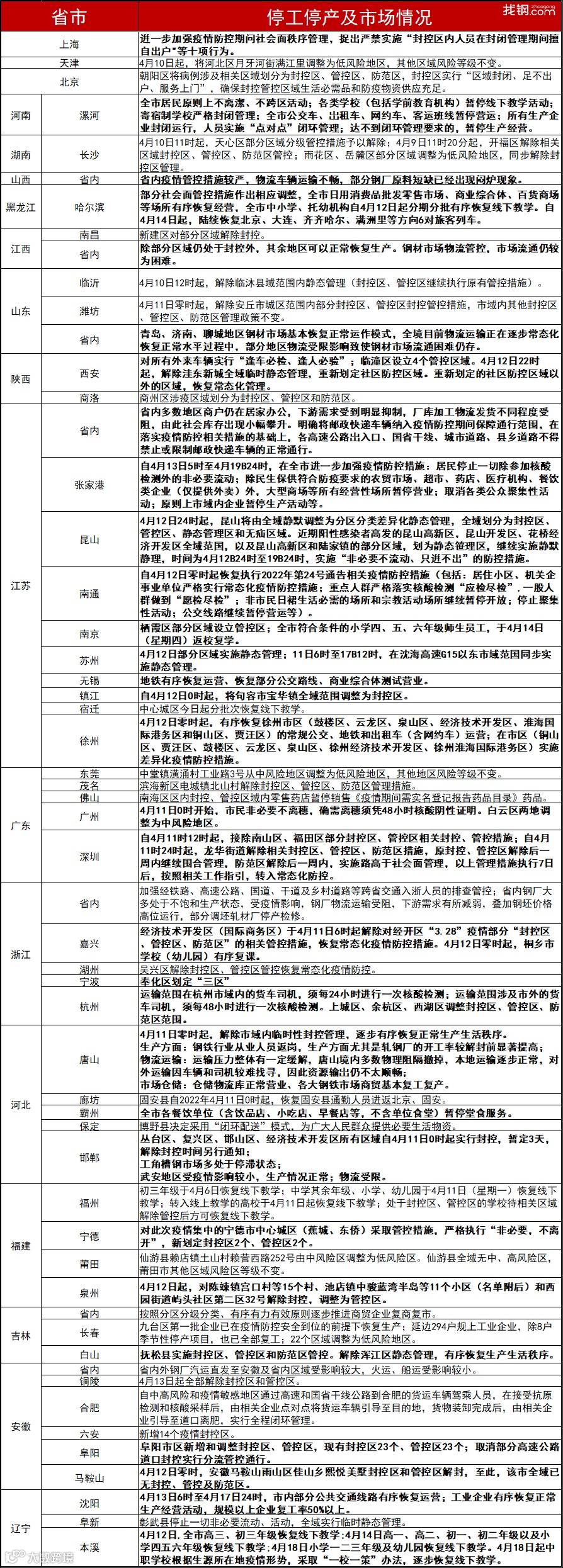 近一周以来,18个省份55个城市最新停工停产及市场情况汇总如下: