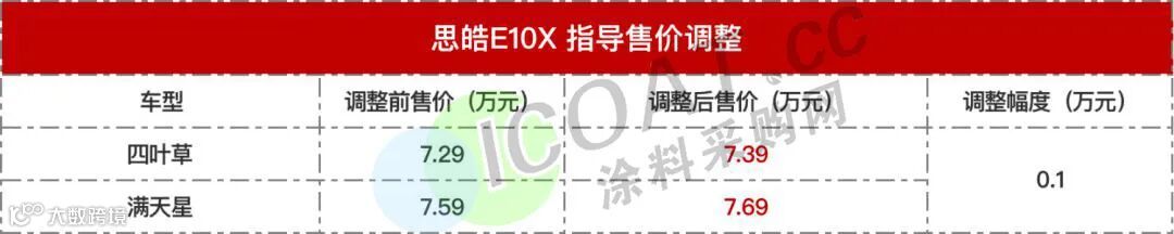 江汽集团思皓E10四叶草和满天星,均涨价1000元。