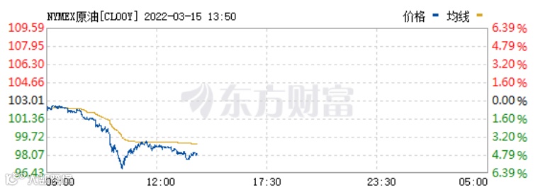 截至收盘,纽约商品交易所4月交货的轻质原油期货价格收于每桶96.44美元,大跌6.38%;5月交货的伦敦布伦特原油期货价格收于每桶99.91美元,跌幅为6.54%。布伦特油价自俄罗斯对乌克兰展开特别军事行动以来,首次跌破每桶100美元大关。