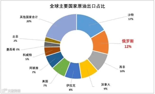 俄罗斯是全球第二的原油出口国,占全球出口12%。
