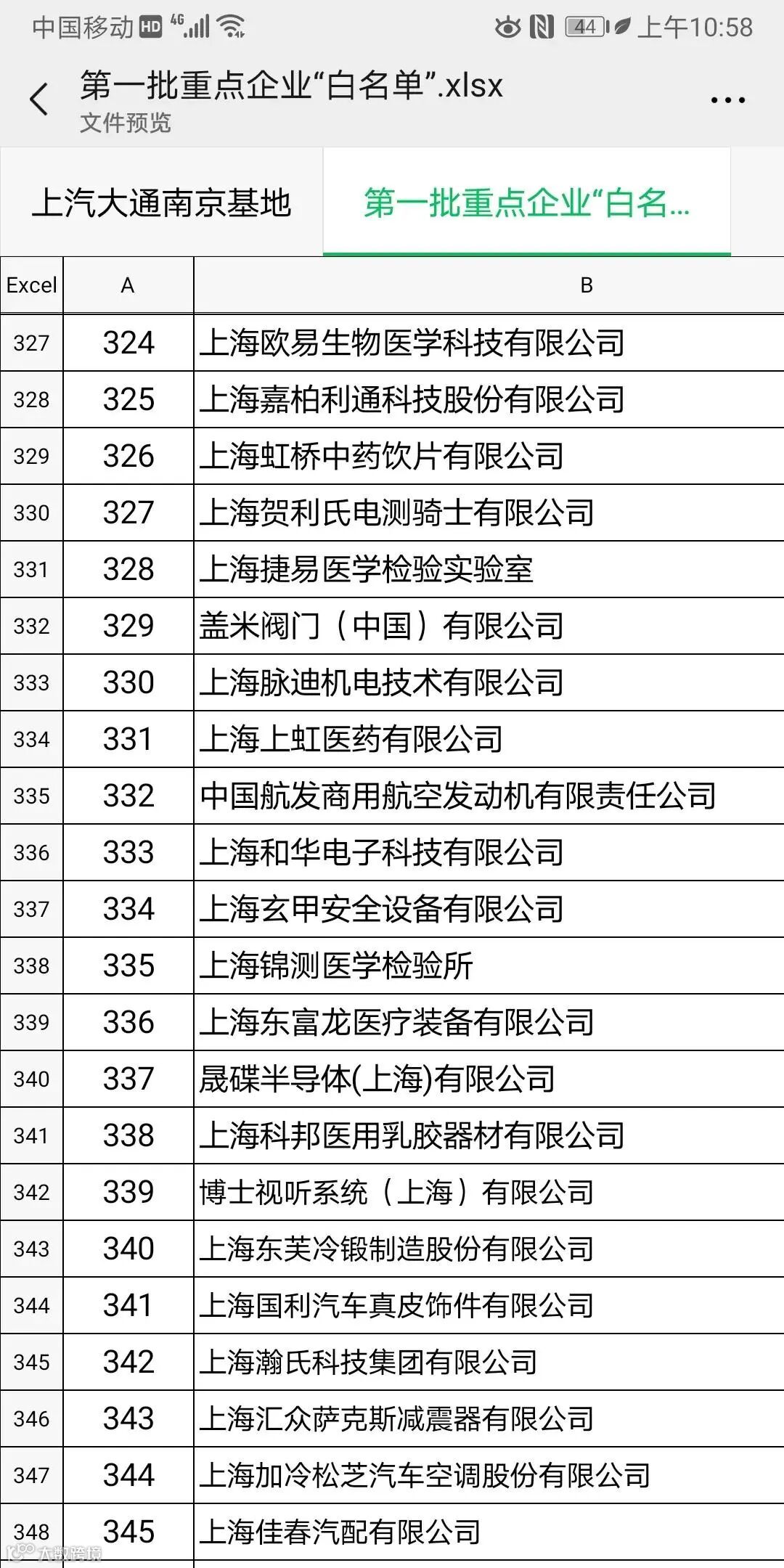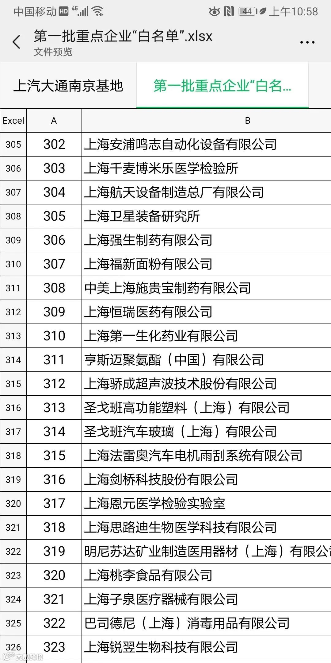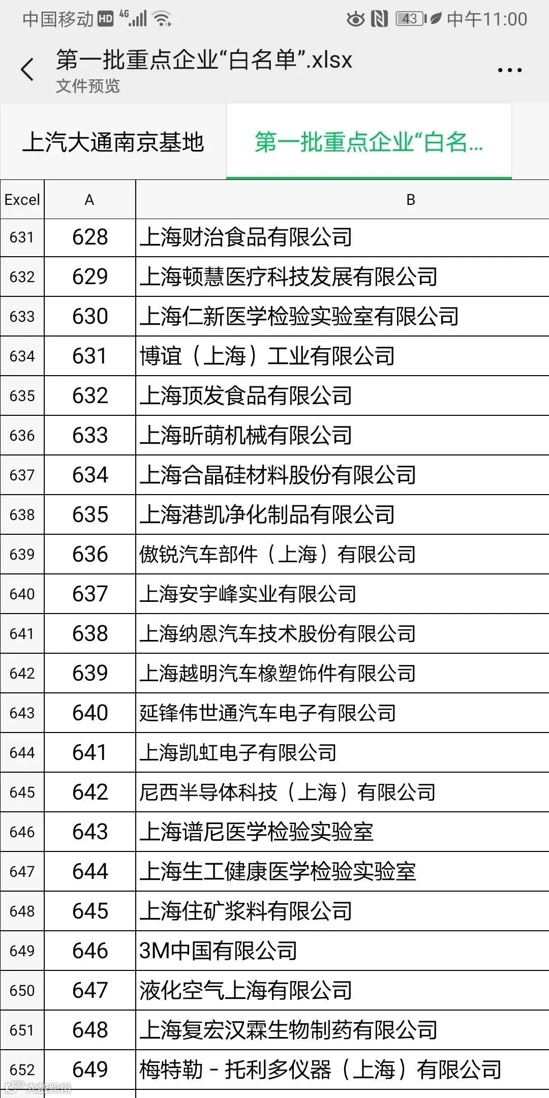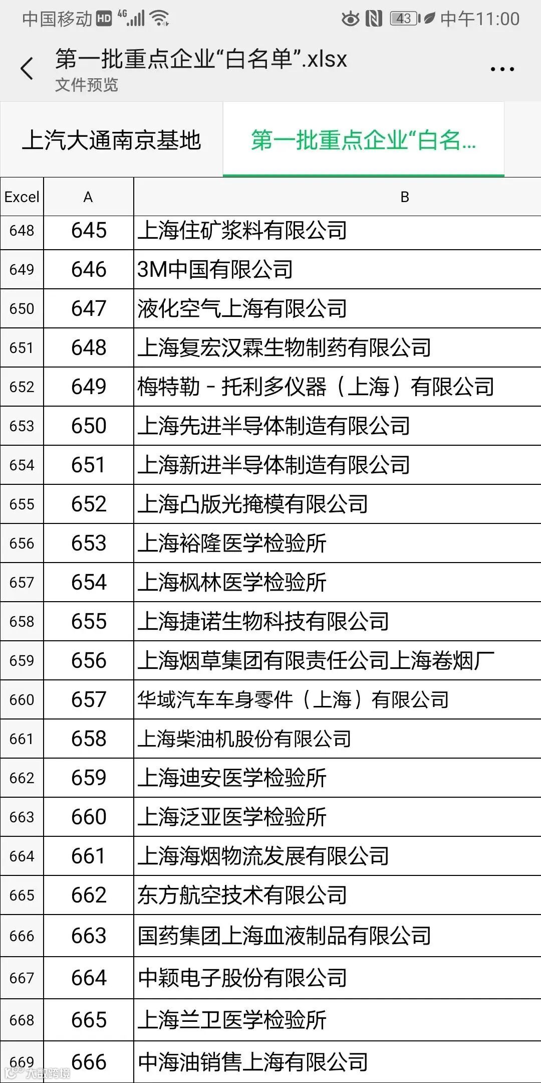 上海第一批666家复工企业名单