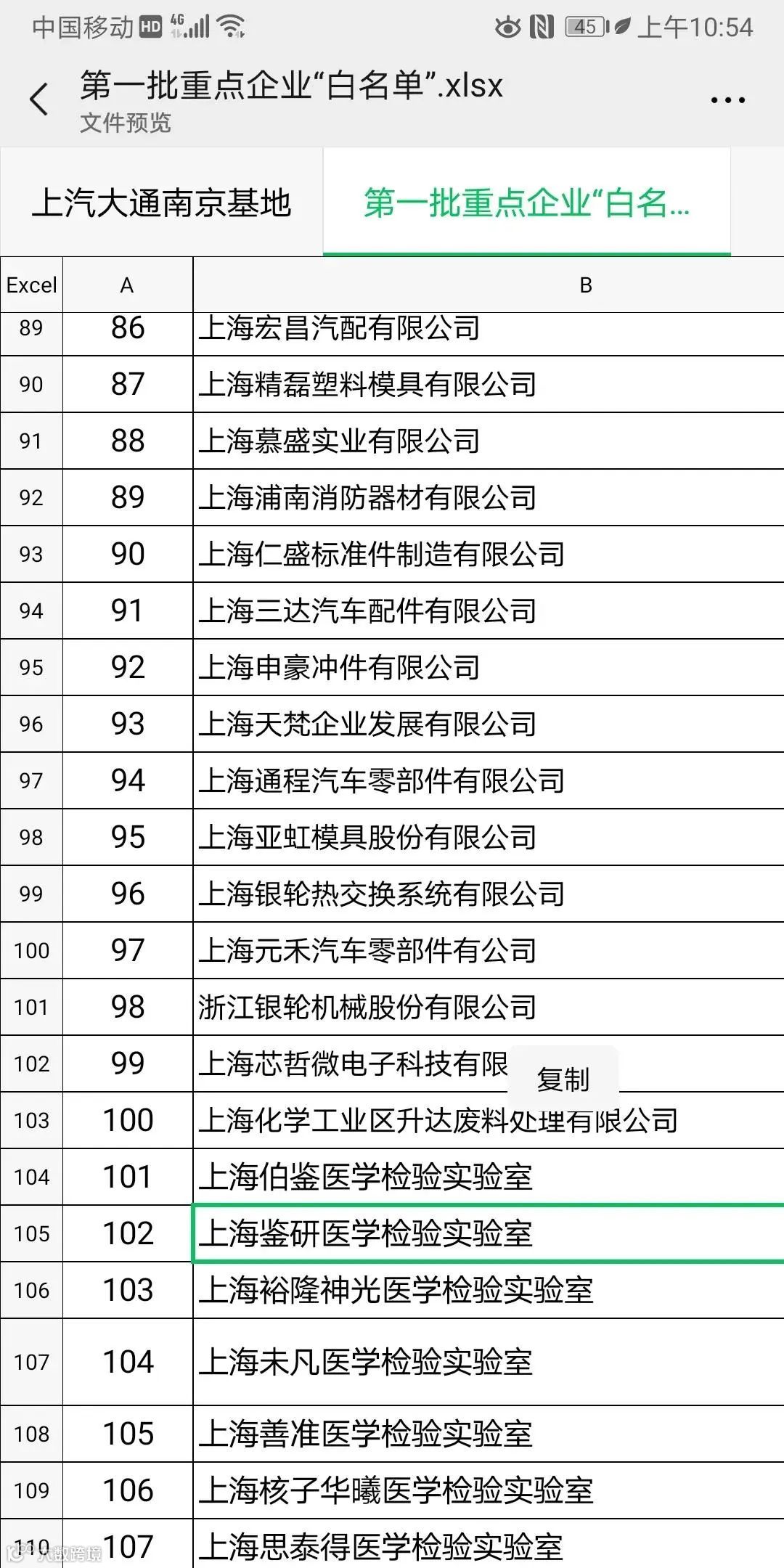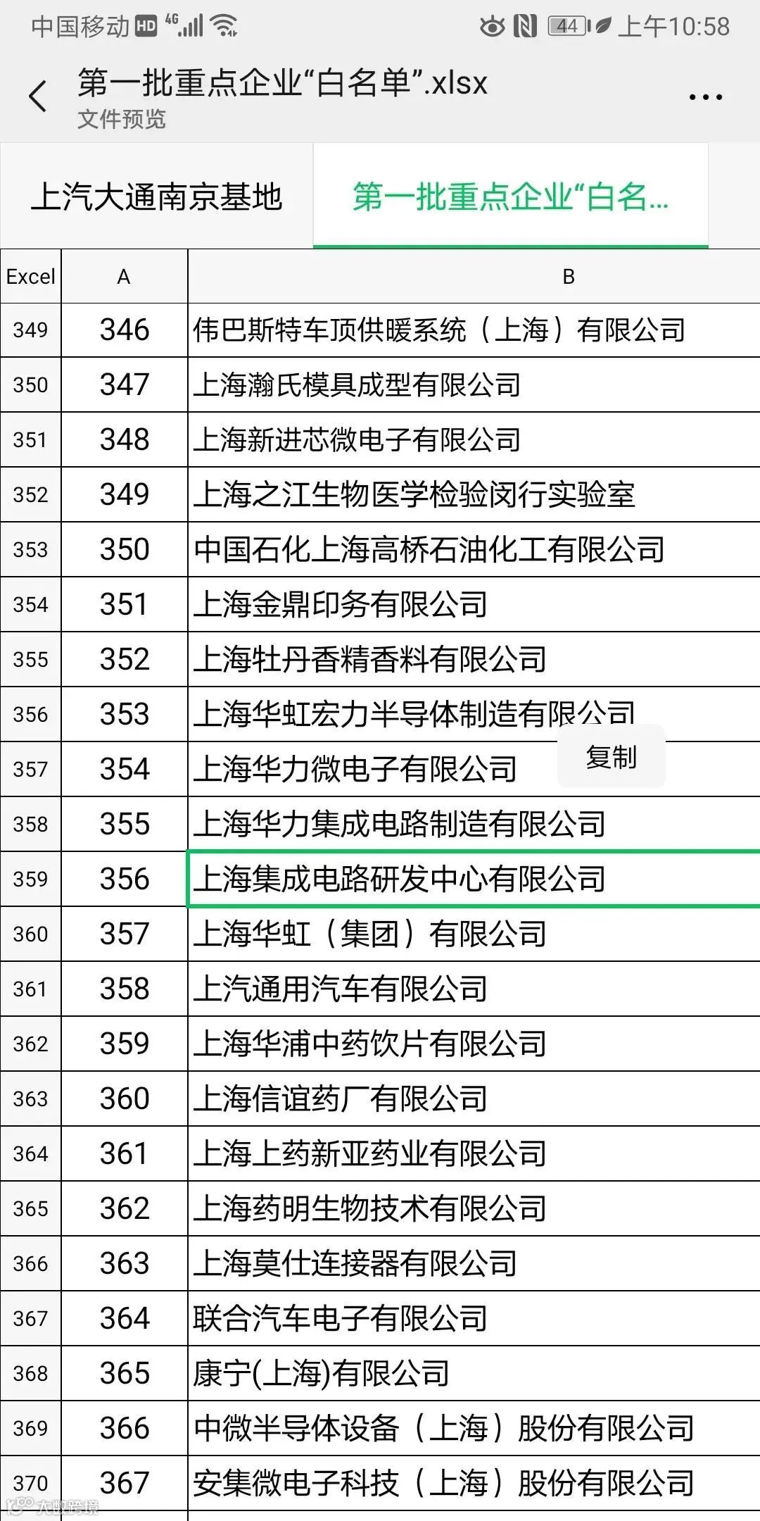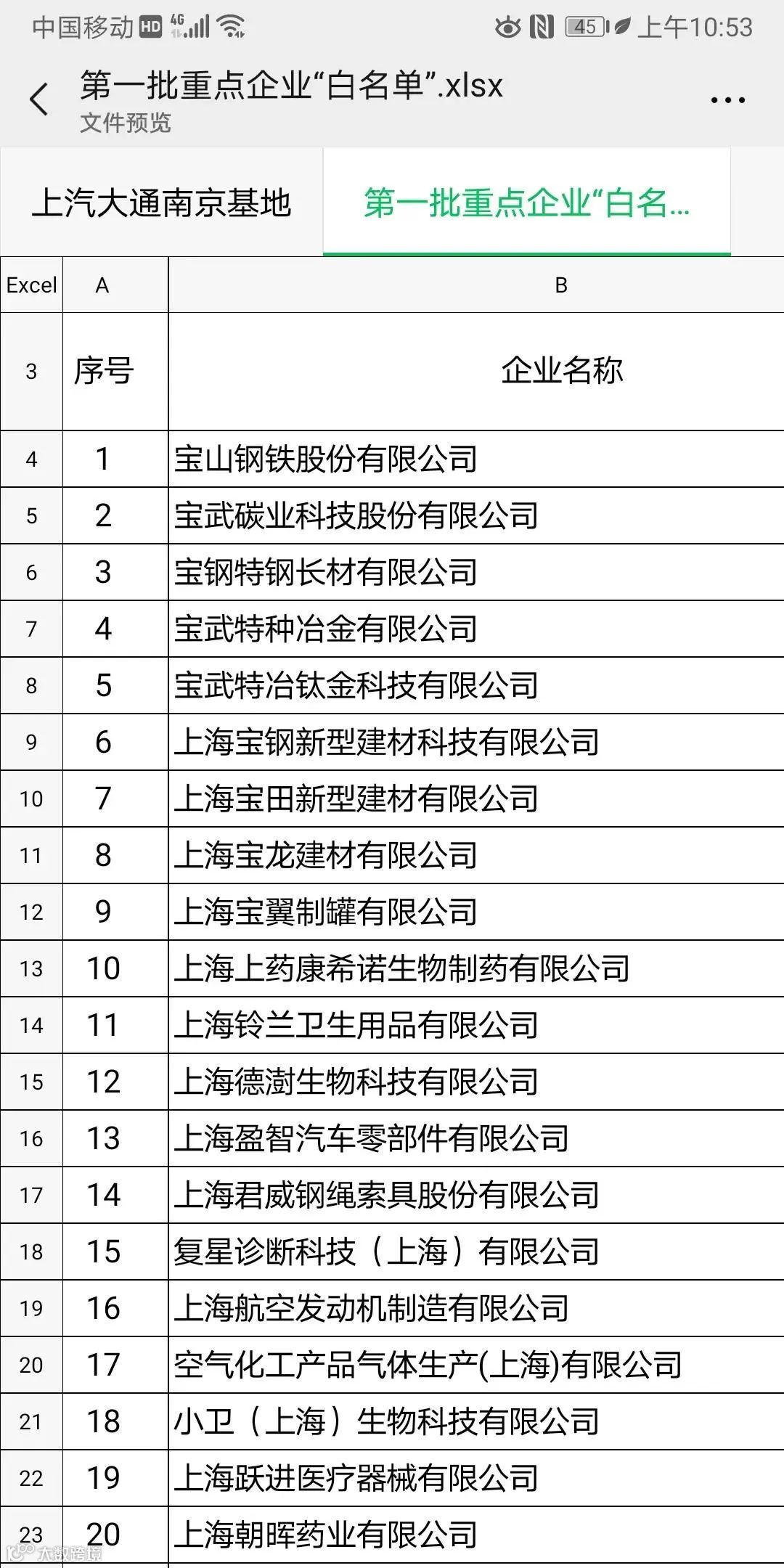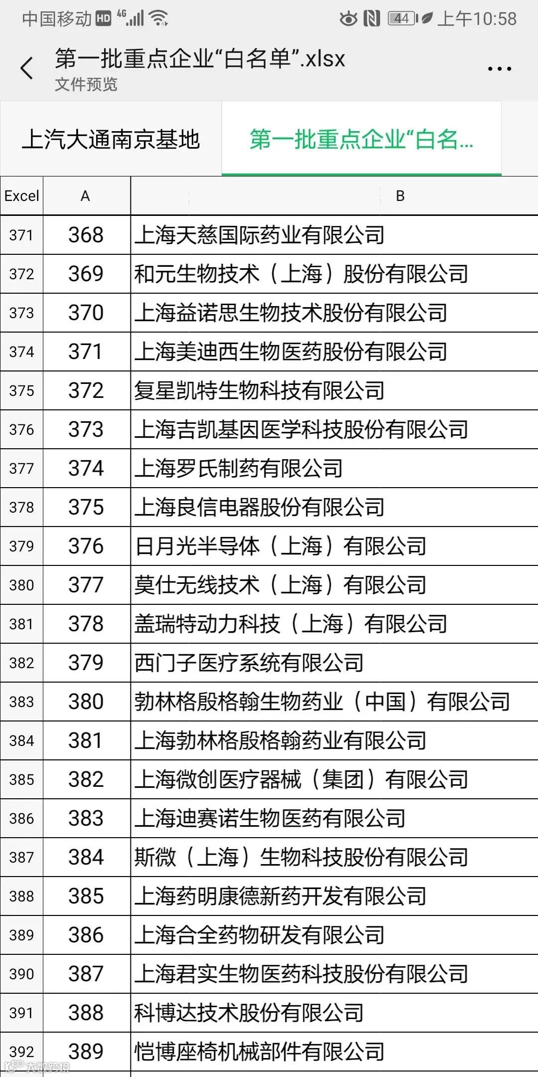 上海第一批666家复工企业名单