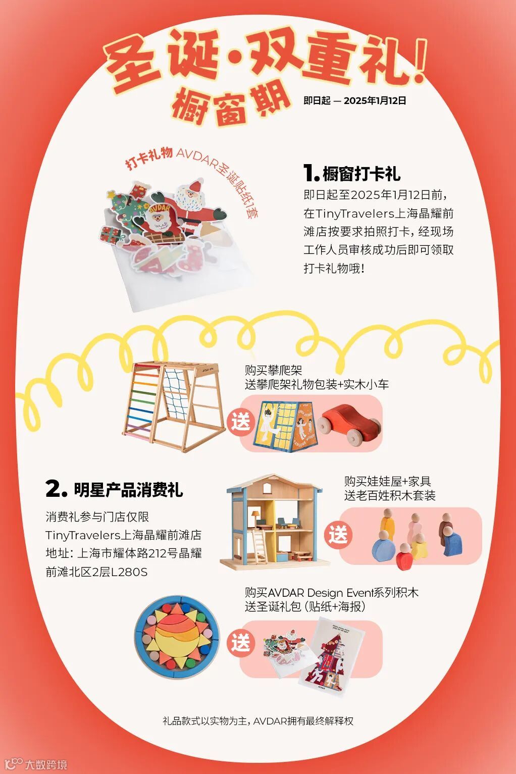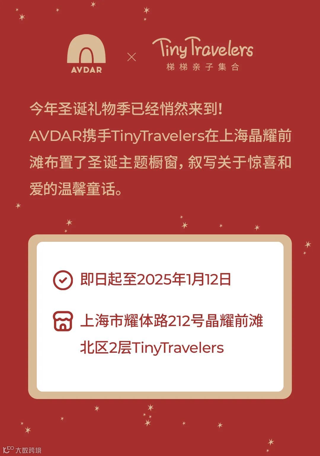 AVDAR和TinyTravelers已经备好了一大包礼物和热切的期待,在上海晶耀前滩等着大家,一起起度过一个惊喜又温暖的圣诞季!