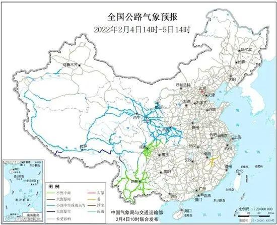 道路交通方面,预计至5日中午,青藏高原大部、西北地区大部、湖北西北部等地部分道路受小到中雪或雨夹雪影响,西藏南部、云南西北部等地局部路段受大到暴雪影响;四川东部和南部、云南大部等地部分道路受小到中雨影响;江西东部局部道路受雾影响能见度低。