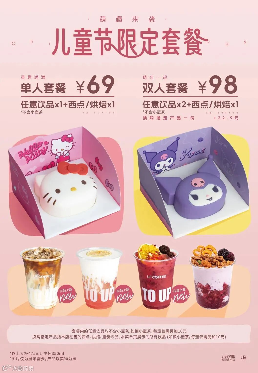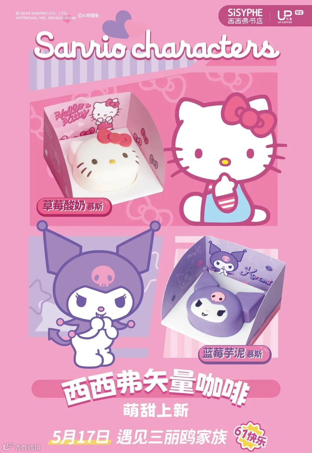 套餐里除了矢量咖啡自制饮品任选,搭配的西点还可以选购新上架的三丽鸥正版IP授权,Hello Kitty草莓酸奶慕斯、库洛米蓝莓芋泥慕斯2款甜点哦~