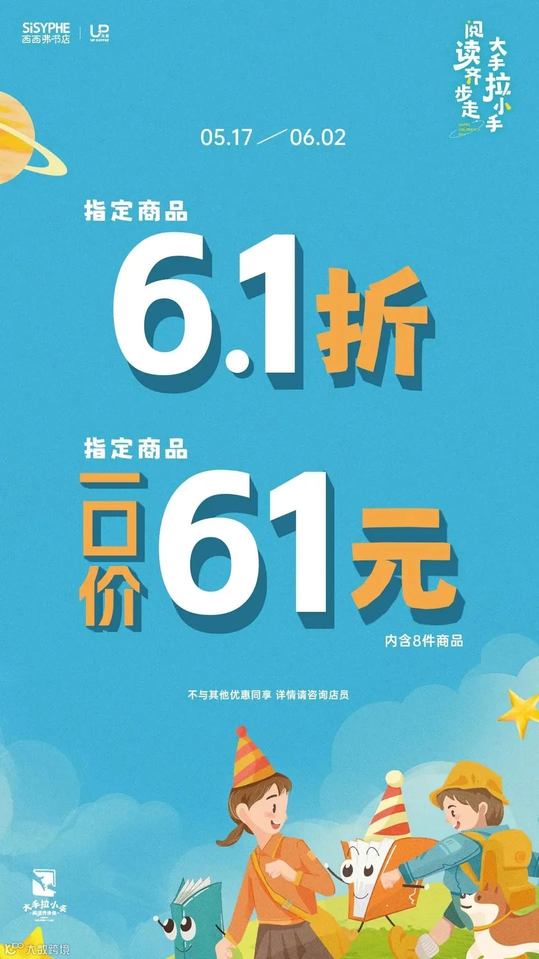 除了惊喜领券活动,门店和APP还有隐藏活动等待大家!许多有趣好玩、大小朋友都用得上的好书、文创专享6.1折,精美文具、手账必备好物限时61元享8件!