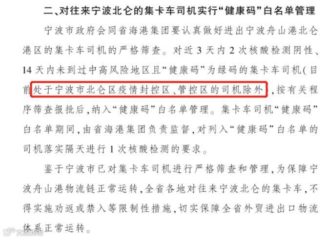 当前最大的问题是,虽然浙江刚刚发布文件要求全省各地对往来宁波北仑的集卡车,不得实施劝返或禁入等限制性措施,但一是管控区和防范区内的司机无法办理通行证,封控区、管控区司机无法取得白名单;二是其他司机可能因为担忧到外地装柜被隔离,而影响出车的意愿。可用司机变少,提箱的效率和可用的空箱数量都会收到影响。