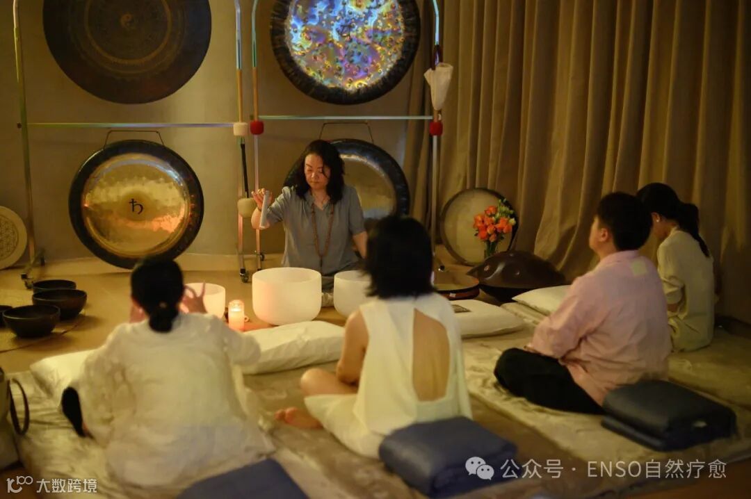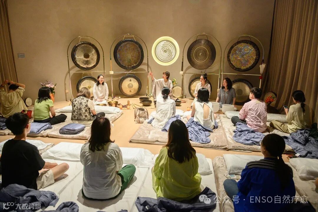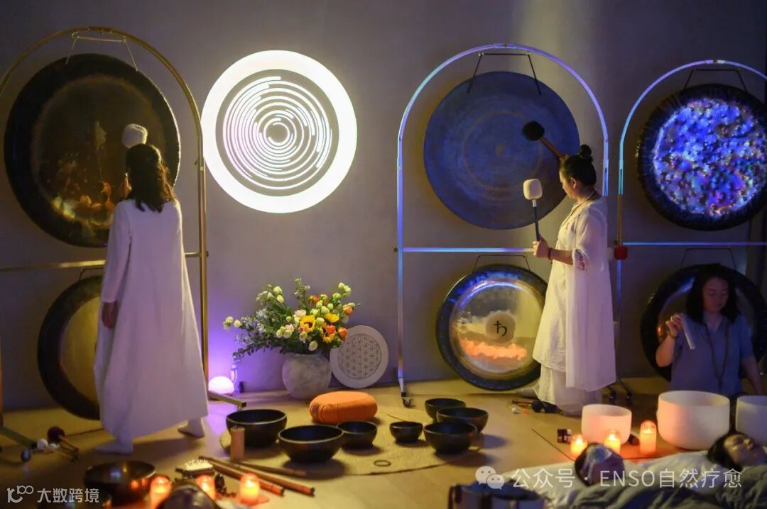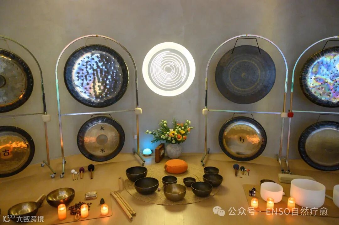 馆内有十二面演奏级别的铜锣,在课程中,随着老师们的演奏,发出的声音如同宇宙初始的回响,引领着我们踏上了一场震撼心灵的音疗之旅。