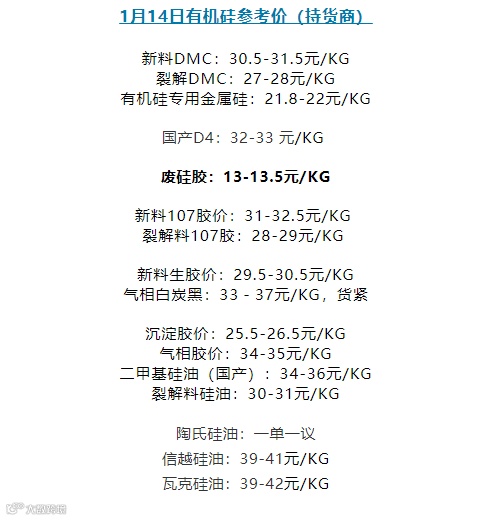 元旦后,DMC需求持续上升+单体供应偏激,不断刺激有机硅价格上涨。