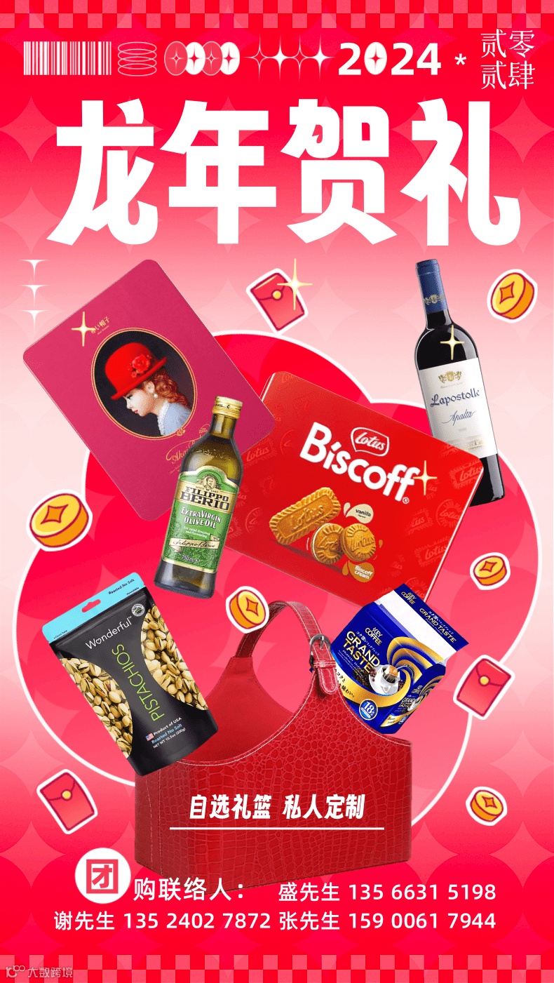 坚果、麦片、饼干礼盒、咖啡、红酒等不同组合,