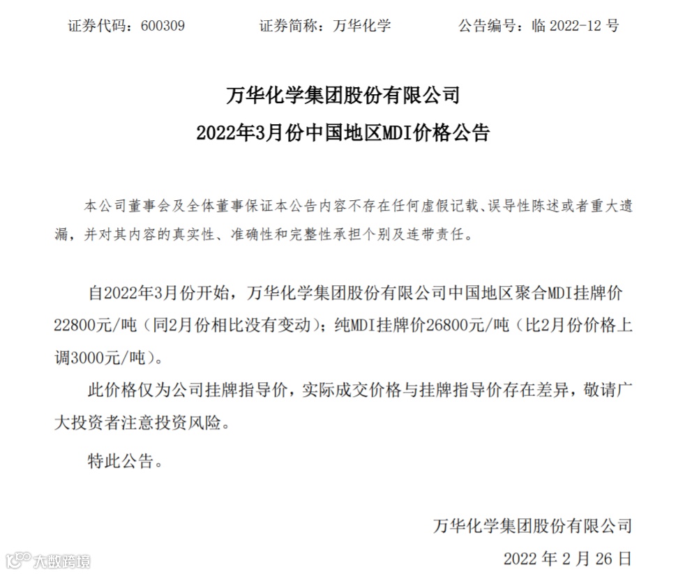 你敢信吗?万华提价!一次上调3000元!