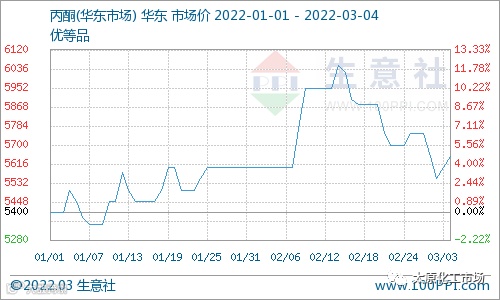 昨日国内丙酮市场重心推涨,报盘小幅上行,主流商谈在5700元/吨左右,原油大涨,成本面不断走高持货商心态得到提振,报盘推涨。终端工厂采购跟进尚可,实盘成交小单进行。